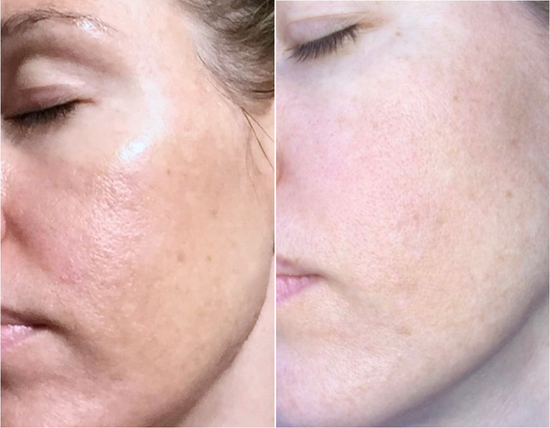 Start with clean, dry skin. Gently cleanse the area you want to treat, face or body, and pat dry.